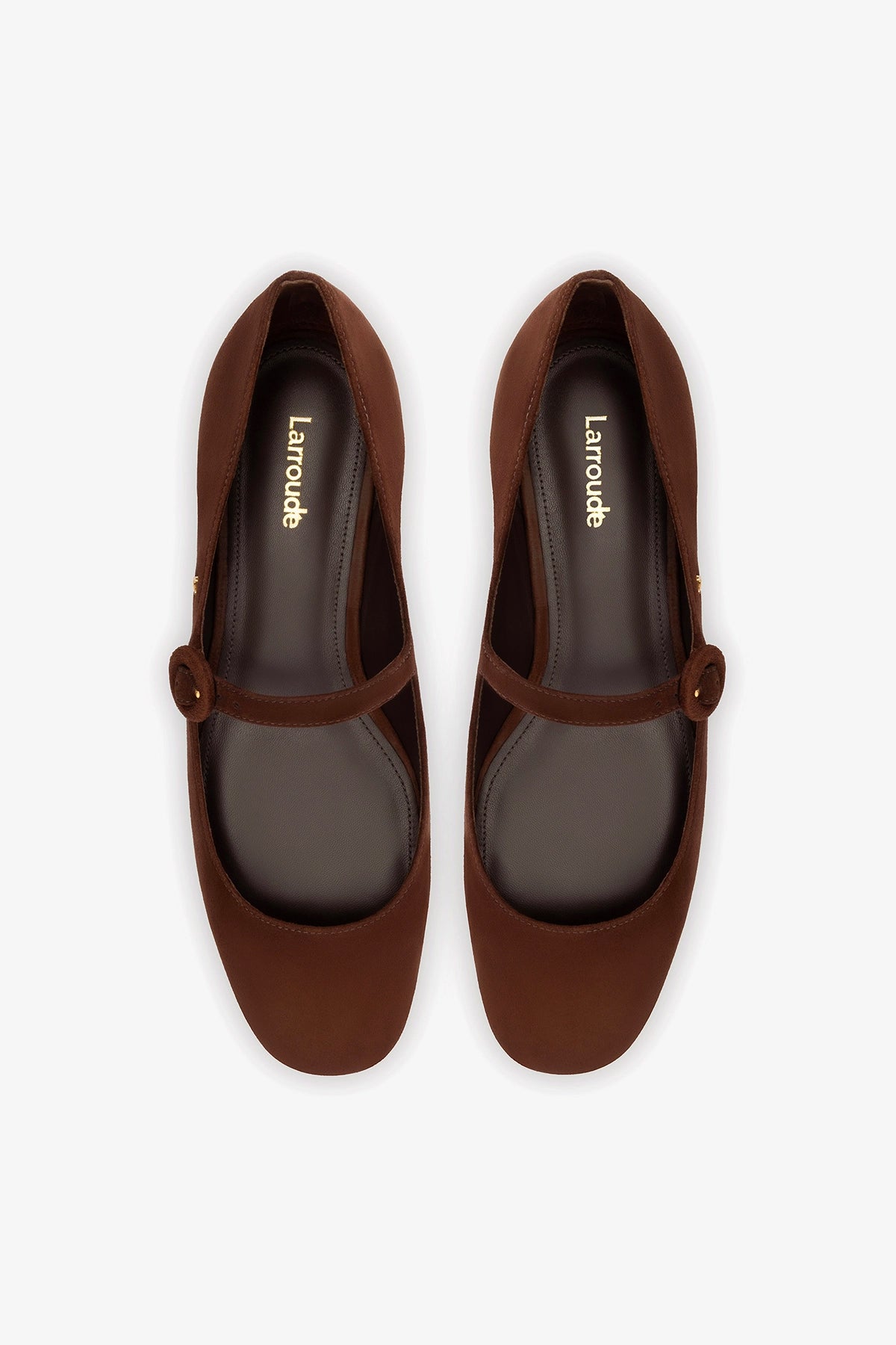 - Logo Larroudé "L" em metal dourado na lateral