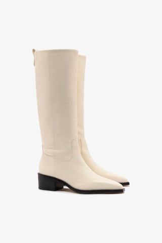 Bota Kate Mini Malha Estampado Marrom e Couro Off White