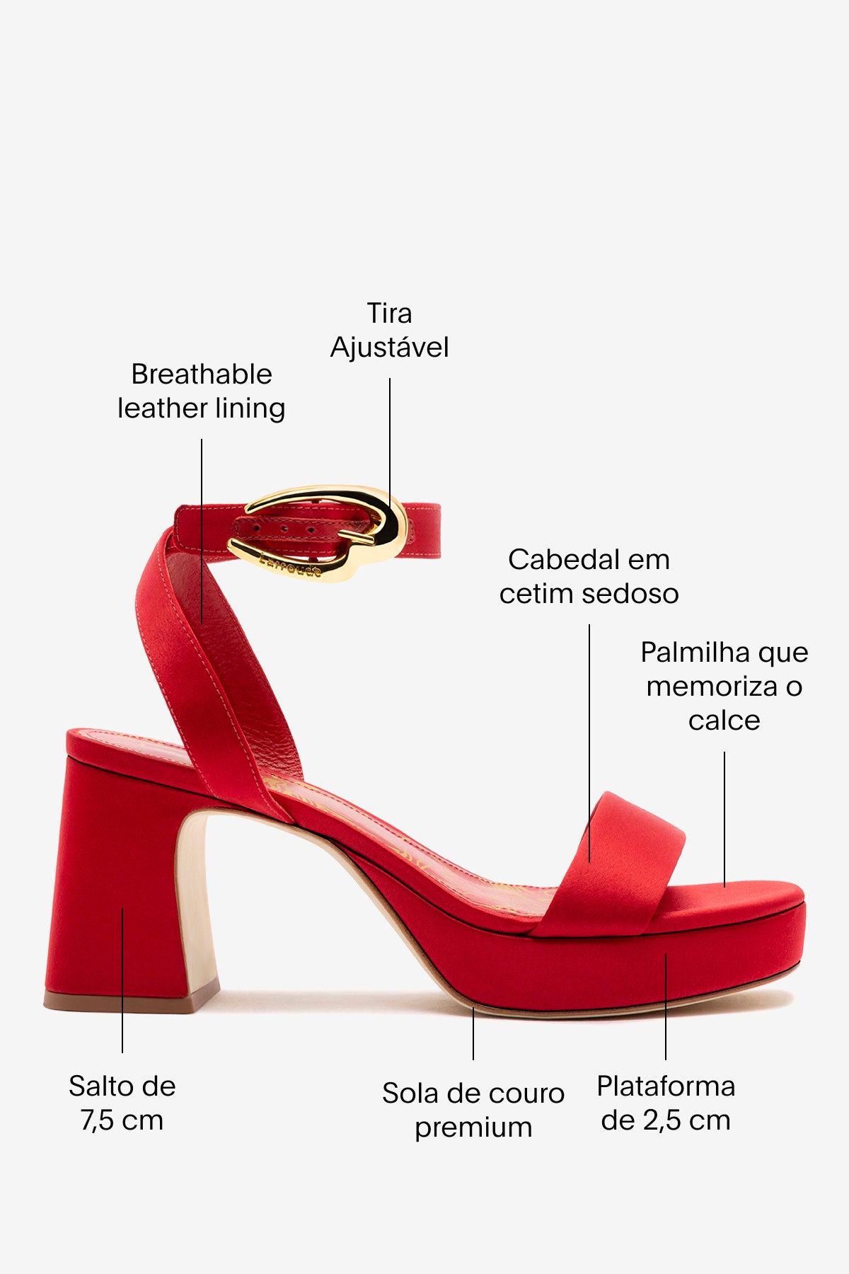 - Sola de couro finamente trabalhada para melhor suporte, durabilidade e conforto