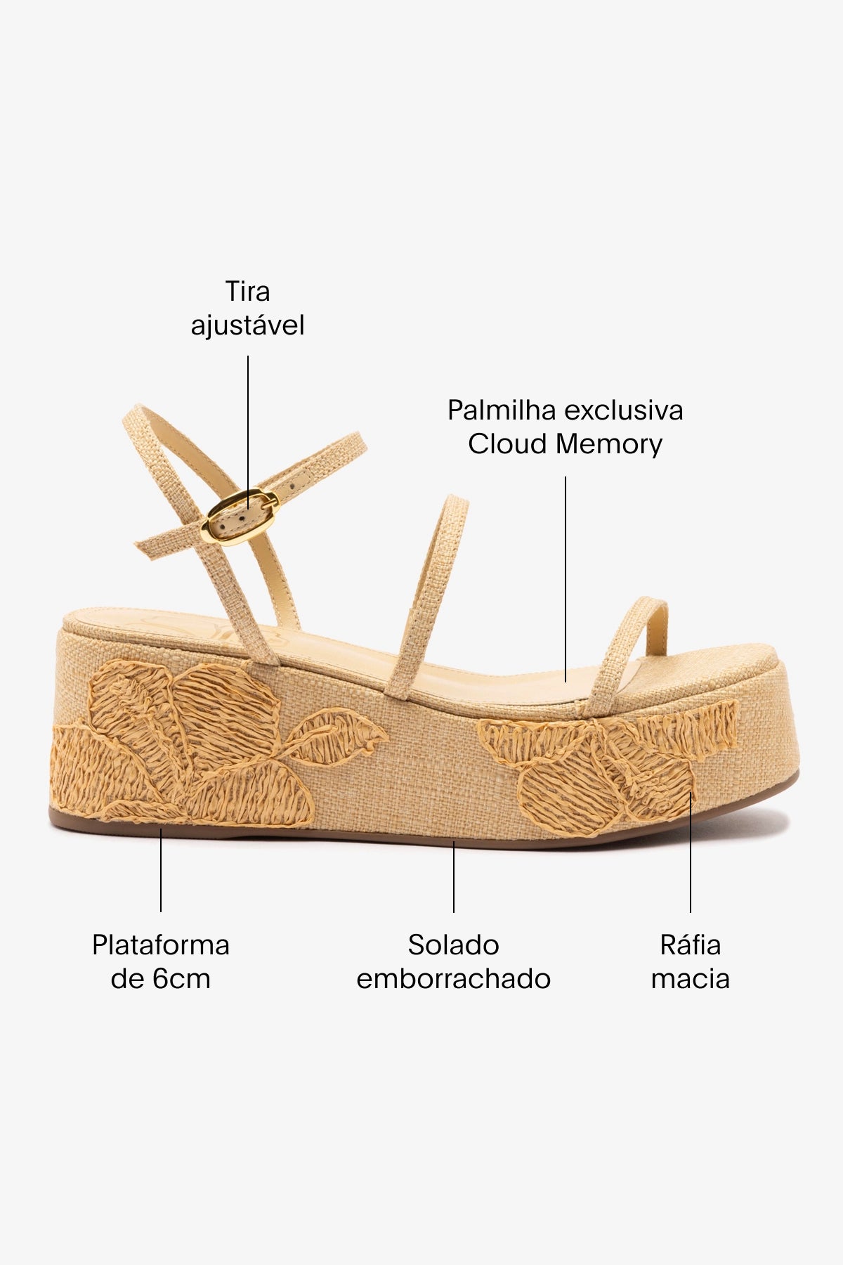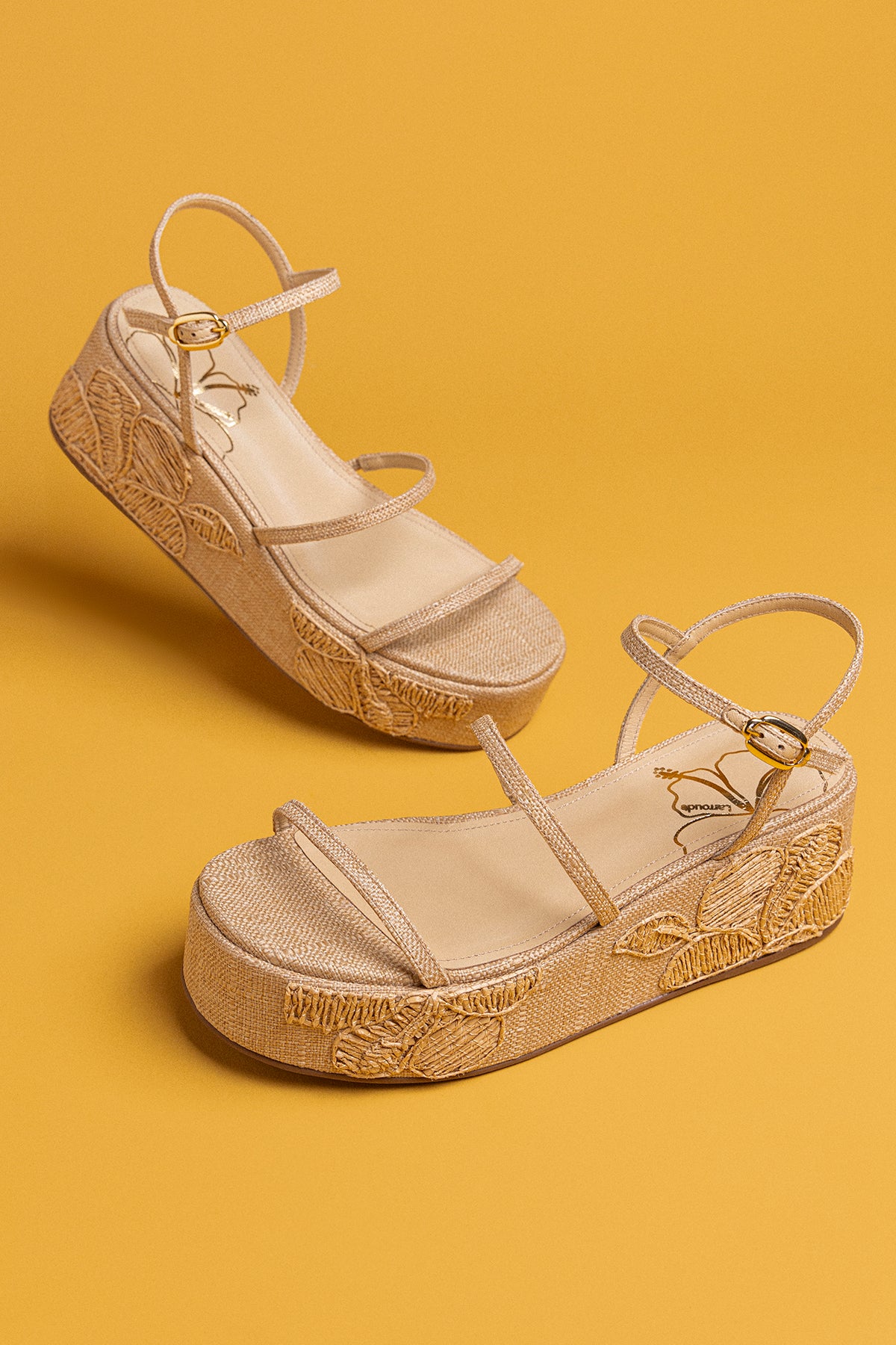 Apresentamos a elegância discreta de Gio com o apelo trendy da nossa flatform best-seller. Must have da temporada, essa criação em ráfia com hibiscos bordados combina tudo que mais amamos em uma base plataforma que entrega altura e atitude.