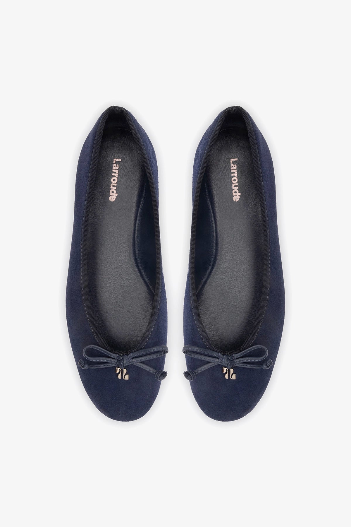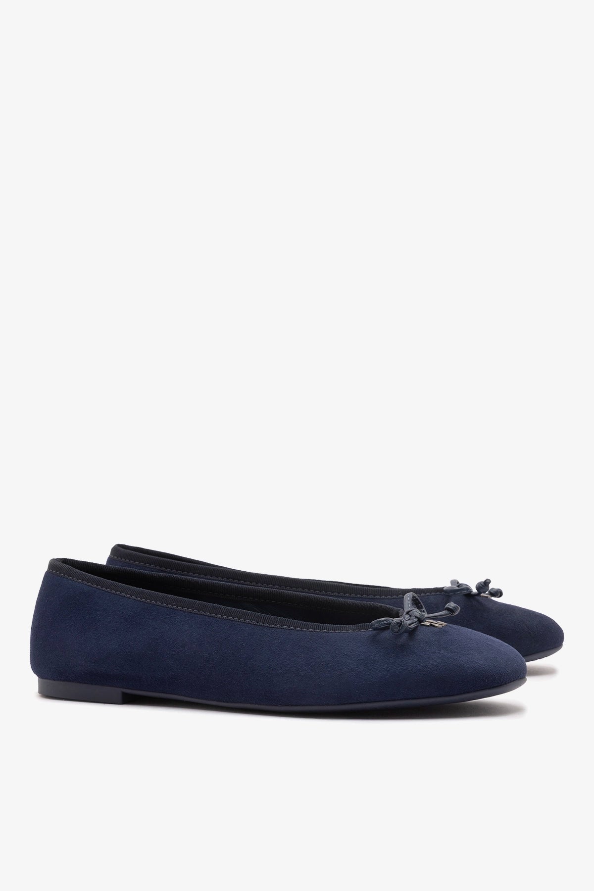 Um ícone do nosso closet, a sapatilha Pavlova foi reimaginada em camurça azul-marinho – um neutro inesperado que vai bem com tudo. Com seu bico arredondado elegante e um delicado laço amarrado à mão, esse é o tipo de par atemporal que eleva qualquer look.