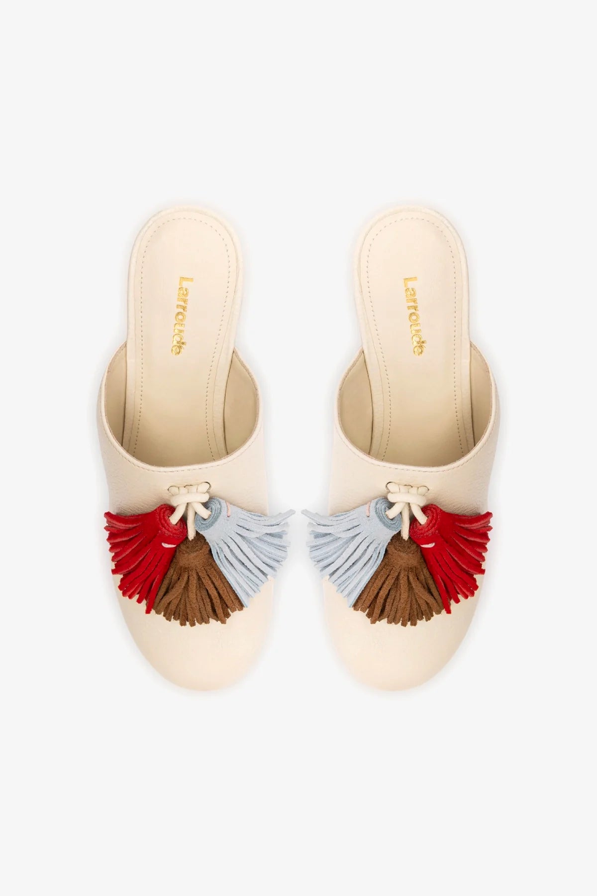 Um toque retrô com frescor moderno, Miso é o clog que mistura uma base robusta em madeira com franjas coloridas, garantindo movimento e personalidade. O couro macio traz conforto imediato, enquanto as tachas douradas adicionam aquele detalhe inesperado que faz diferença. Um sapato que é statement por si só – é só calçar e deixar o look falar.